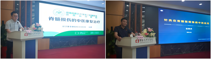 在随后的专题报告中,来自省市的13名专家带来了前沿的学术成果和临床经验。湖南中医药大学附属第二立博体育 的张鹏教授强调了中医康复方法对脊髓损伤患者神经功能的恢复作用;长沙市中医立博体育 的杜革术教授深入探讨了针灸在脊髓型颈椎病治疗中的应用;立博体育 的丑克教授、周俊杰教授、陈立早教授、赵巧珍教授和王井泉教授分别就髋关节置换、医学影像、颈椎矫正、神经根型颈椎病和针灸治疗等主题进行了精彩分享;湘潭市中心立博体育 的李青教授介绍了脊柱区肌骨超声的临床应用;湖南省人民立博体育 的李辉萍教授介绍了脊柱侧弯的治疗和科普工作;湖南中医药大学附属第一立博体育 的叶勇教授以脊骨神经医学为基础,讲解了颈椎矫正治疗;湘阴县中医立博体育 的陈建勇教授分享了下肢冰凉的诊疗经验;长沙市第一立博体育 的肖乐教授和刘超教授分别就脊髓梗死康复和脊髓损伤神经源性膀胱的评估与治疗发表了见解。