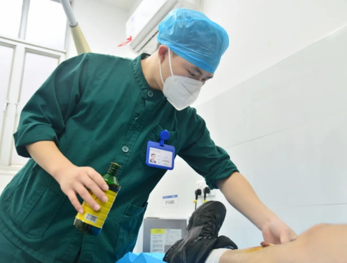 医务人员在给患者清理创口