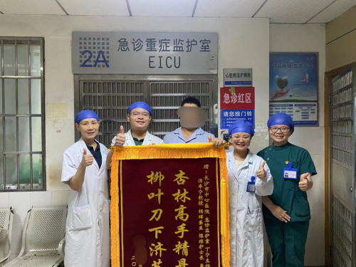 急诊监护室医护人员的精心救治,才脱离危险。7月8日,康复出院的他将一面写有“杏林高手精悬壶、柳叶刀下济苍生”的锦旗送到了医护人员的手中表达谢意。