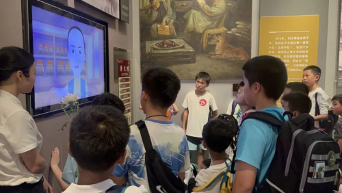 在刘少奇同志生平展区,通过红色动画影视教育传播润物无声价值,把孩子带回“刘少奇爷爷”自幼励志求学的那段历史中,孩子们或站或蹲,有的还席地而坐,聆听了讲解员讲述刘少奇同志小时候用功读书的故事,深刻感受到了刘少奇同志的伟大精神和高尚品质,坚定了为祖国繁荣富强而努力学习的决心。