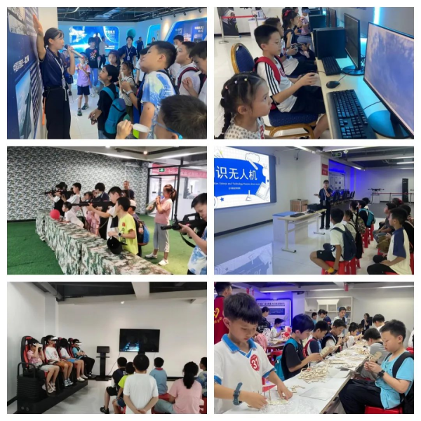 “看!那是我国自主研发的战斗机!”孩子们的眼中闪烁着兴奋和好奇的光芒。在科技馆工作人员的带领下,孩子们了解了飞机的构造原理、飞行原理以及航空科技的发展;通过VR体验的方式,感受了国防军事、射击空战等模拟现场;借助飞行模拟操作仪,学习飞行技能入门课程;探秘无人机飞行原理,进行机甲大师挑战赛,并进行航模DIY制作等沉浸式互动体验,充分激发孩子们的科学梦想,在引导大家厚植“强国有我”的责任感与使命感的同时,增强了团结协作意识,增进了孩子们的友谊,为学习课外科普知识打下基础。