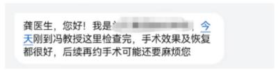 (患者表示恢复很好,并联系预约下次手术)