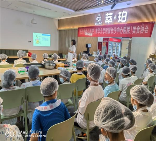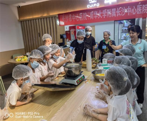 在甜品制作活动现场,孩子们的笑声如同夏日里的清风,营养科工作人员为孩子们讲解“怎么喝奶更健康”的营养知识,孩子们全神贯注、积极互动,学习到了怎么挑选更健康的奶制品。