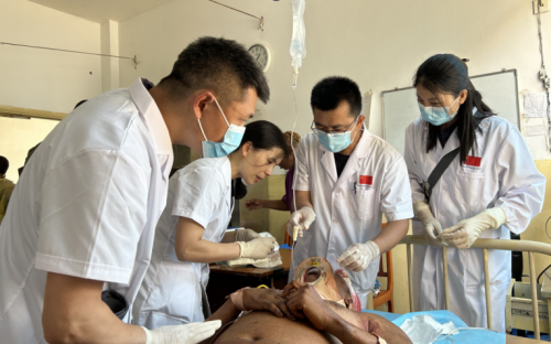 医疗求助,结合多次抢救经验,设立具有专科特色的移动抢救箱,方便随时出诊。并组建RRT快速反应小组,规范抢救流程,以应对突发疾病及事故等紧急医疗事件。针对塞方的医护人员短缺、医疗资源不足,医疗设施及观念落后等情况,有针对性地定期开展护理培训教学工作,提升当地医护人员的护理水平。