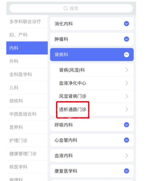 服务号——院内服务——在线挂号——内科——肾病科——透析通路门诊