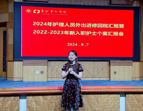 于2024年8月7日下午在办公楼一楼国际学术报告厅举办了2022年-2023年新入职护士个案汇报会暨2024年护理人员外出进修回院汇报会。护理部主任吴传芳,副主任董启玉,全体护士长、全体新入职护士、省专科实践基地护士代表等共260余人参加了此次会议,会议由2022年新入职护士甘爽担任主持。