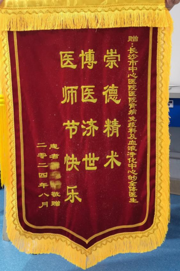 透析,还重拾了往日的乐趣,与小区老人一同打太极拳。医师节前夕,黄爷爷特意制作了锦旗,以表达对肾病、风湿免疫科及主治医生雷容的无尽感激。
