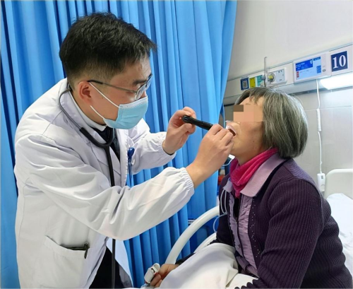 每日查房,尹亚飞认真查看患者症状变化,细心与患者沟通