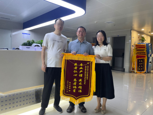 出院时,胡先生和妻子红着眼眶表示,令他们万万没有想到的是朱主任毅然选择和他们一起承担风险,他们敬佩朱主任的担当和责任,并送上一面锦旗感谢朱主任的医者仁心。
