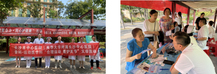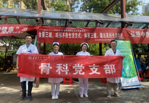 骨科党支部在社工部的组织下,来到了砂子塘街道赤岗冲廉文化广场,与砂子塘街道社区卫生服务中心联合开展“全民健康生活方式宣传月”义诊活动。