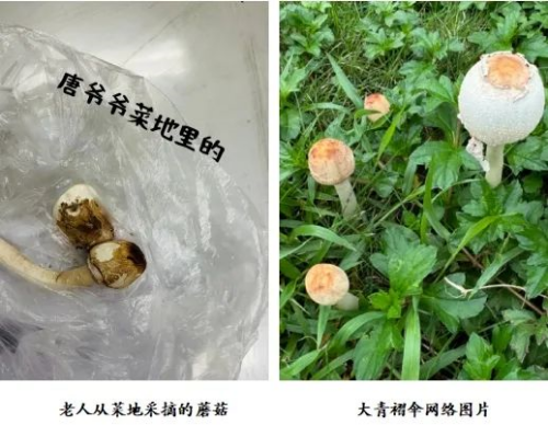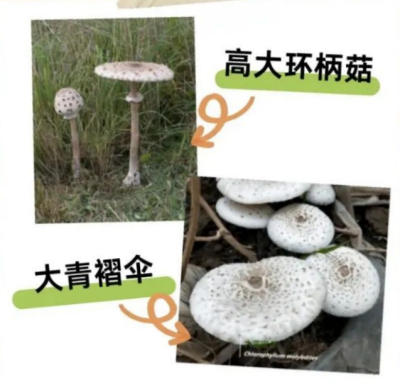 而成熟的大青褶伞则与美味的高大环柄菇相似。民间多有采食高大环柄菇的习惯。有时大家就会将大青褶伞误认成高大环柄菇进行采摘食用导致中毒的事件时常发生。