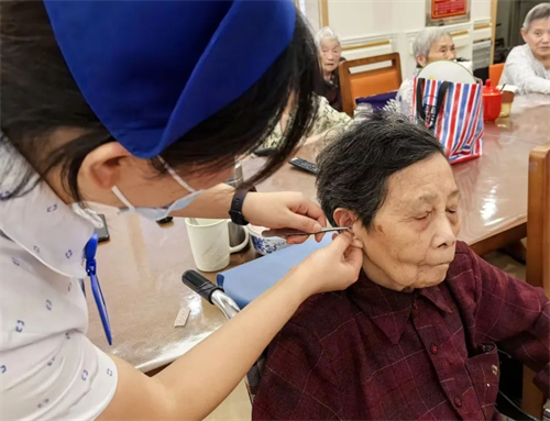 在义诊过程中,中西医结合科副主任医师杨昕、主管护师王凤、常浪为老人们提供了中医适宜技术的体验,如耳穴疗法治疗失眠之症。通过贴压耳穴,指导正确的按压方法,让老人们感受到了中医药的独特魅力。这种细致入微的关怀和贴心服务,让老人们倍感温暖。