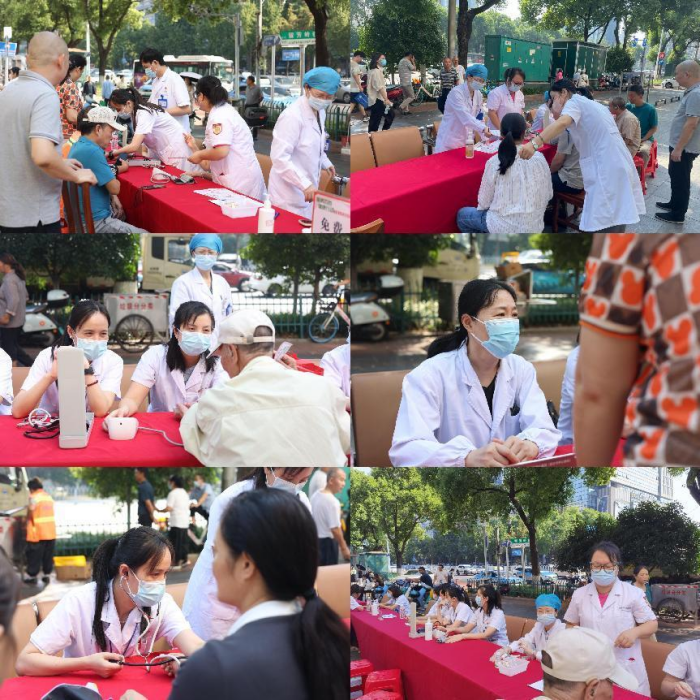 活动当天,秋高气爽、微风徐徐,社区居民络绎不绝。支部携带了齐全的医疗设备,以专业严谨的态度和满腔的热情迎接每一位前来咨询的居民。义诊活动的内容丰富多样,包括测量血压、血糖,现场问诊、看诊,以及向群众普及心脑血管、高血压、高血糖、脑卒中及常见皮肤病的治疗与预防等相关健康知识。