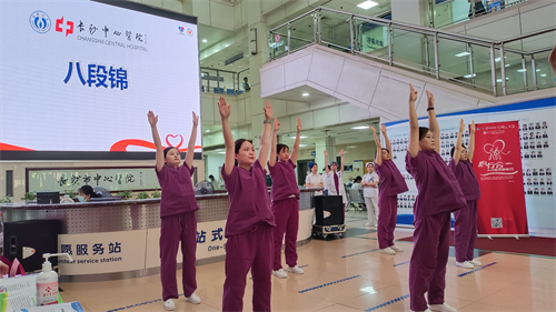 随后,心血管内科心脏康复小组的医护团队带领病友及市民学习传统养生功法“八段锦”,通过柔和连贯的动作,引导大家体验身心的和谐与放松。