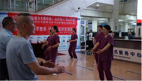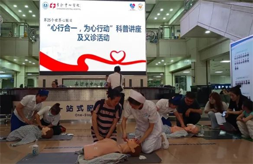 活动还设置了心肺复苏技能教学环节。心血管内科护理团队现场演示心肺复苏的操作步骤与关键要点,并邀请市民参与实践,鼓励大家掌握这个能救命的技能,重视心血管健康,增强心血管防治意识。