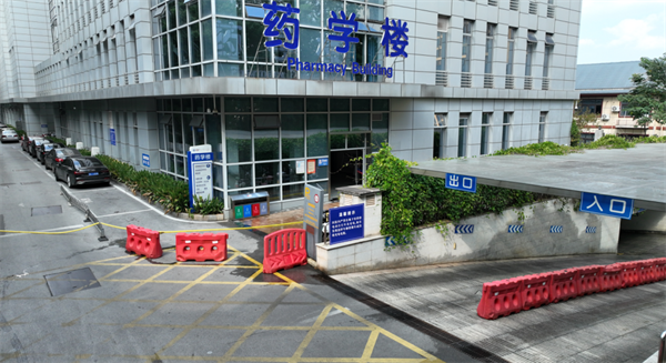 住院大楼东部,药学楼门口地下停车场入口进入