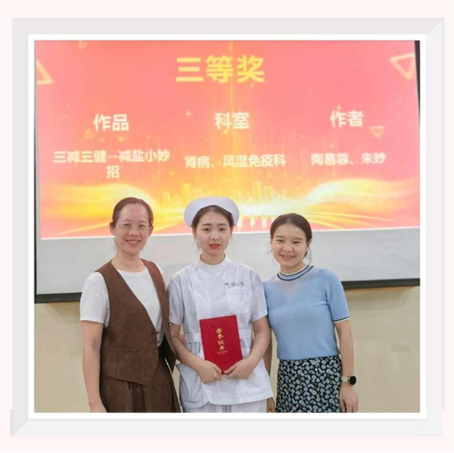 经过专家评审团的严格评审,来自全科医学科的《知“食”就是力量》荣获一等奖,中西医结合科的《让甜蜜,不忧伤》荣获二等奖,肾病、风湿免疫科的《三减三健——减盐小妙招》荣获三等奖。护理部大内科一区科护士长谭力权对本次科普大赛进行了总结,她充分肯定了竞赛的成果和意义,赞扬了大家开展科普工作的积极性和主动性。她表示,此次大赛不仅为护理人员搭建了一个展示和交流优秀护理科普作品的平台,更提升了护理人员的科普创新意识和传播能力。
