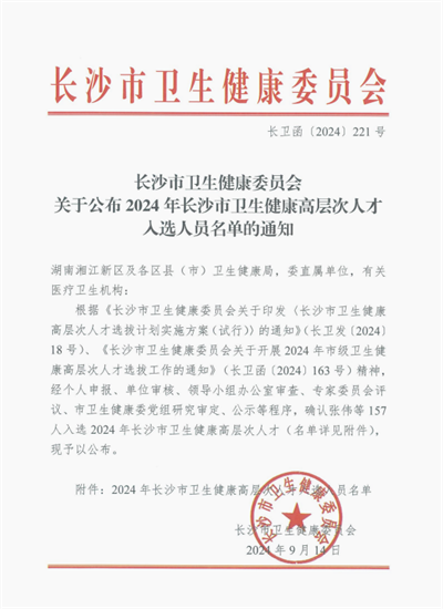 近日,长沙市卫生健康委员会公布2024年长沙市卫生健康高层次人才入选人员名单,立博体育 传来喜讯,十位杰出的医疗专家荣获长沙市卫生健康高层次人才的荣誉。这不仅是对他们个人专业技能和学术成就的肯定,也是对立博体育 实施“53211”人才战略,长期致力于人才兴院的有力证明