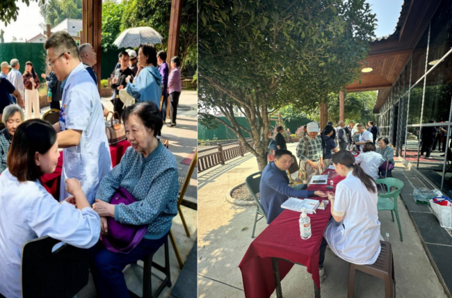 健康管理中心党支部一行四人前往望城为长沙市商务局退休职工开展“情暖重阳,乐享健康”医疗健康讲座与义诊活动。