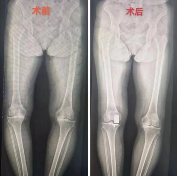 李良军解释,单髁置换术相比全膝关节置换术,保留了患者没有磨损的软骨和正常的韧带,只置换了膝关节内侧或者外侧间隙磨损的那部分软骨,所以手术创伤更小、患者恢复更快,术后行动更加自如。本次手术十分成功,术后第二天,刘奶奶在病房走廊上自信地练习行走,并热情地与旁边充满好奇的病友分享自己经历,劝大家一定要早诊断早治疗。