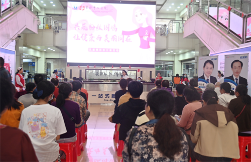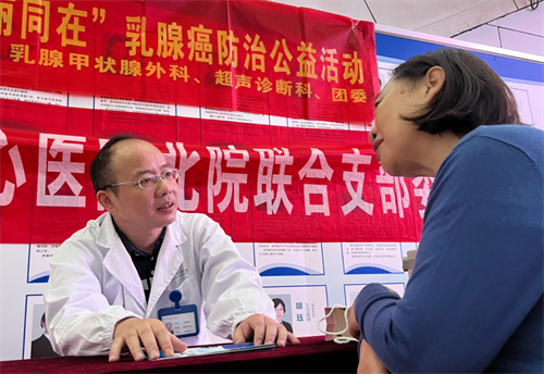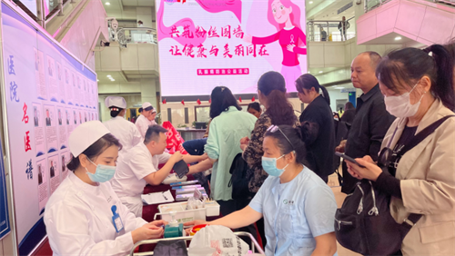 门诊大厅联合举办“共筑粉色围墙 让健康与美丽同在”乳腺癌防治公益活动。