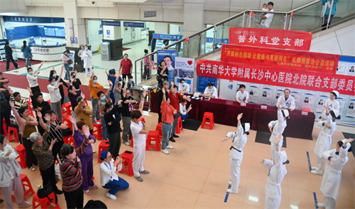 活动现场,护士们还带领市民学习乳腺保健操。让大家在寓教于乐的互动中学习预防乳腺疾病的小知识。