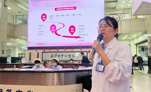 在公益活动中,刘歆春带来《乳腺癌患者如何走出阴霾,走向阳光?》专题授课,围绕“乳腺癌患者的常见心理问题”“负面情绪对我们的不利影响”等内容,进行了深入浅出地讲述。超声诊断科副主任医师李琼带来《超声守护“乳”此美丽》健康授课,分享了如何利用超声波技术精准识别乳腺肿块相关知识。