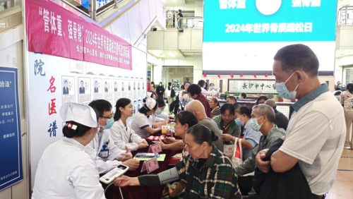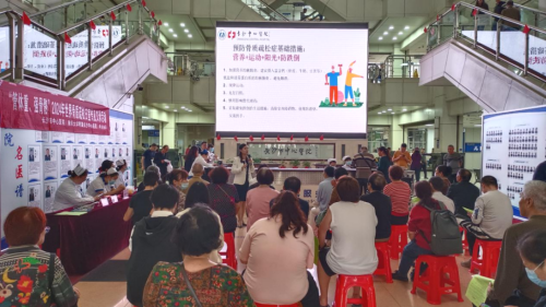 门诊大厅举办科普讲座及义诊,免费测骨密度,吸引众多市民及病友参与。