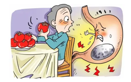 申月明介绍,胃结石,又称胃石病,是由于食入的某种动植物成分、毛发或某些矿物质在胃内不被消化,凝结成块而形成。最常见原因有:过多食入柿子、山楂,其次还有枣子、甜糯玉米等食物所致,其形状多为圆形或椭圆形,大小不一,小的如乒乓球,大者似婴儿头。而由进食柿子引发的胃结石又称胃柿石,是植物性胃石的一种,多见于老年患者。通常认为柿子中的鞣酸在胃内与稀盐酸接触后形成黏稠胶状物,再与植物纤维凝结,形成块状结石。一般情况下,正常食用少量柿子并不会形成结石,但如果食用过多、空腹食用、柿子未成熟,以及消化功能较弱的老年人群食用则易形成胃柿石。