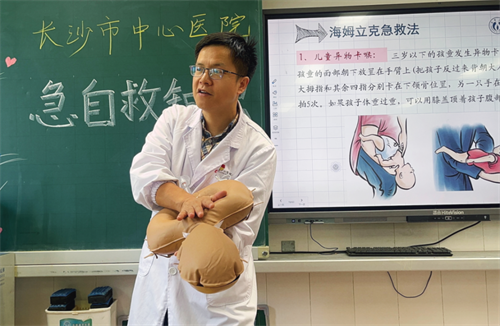 急诊医学科、团委和关工委等志愿者前往雨花区天鸿小学开展“健康‘双11’ 急自救知识进校园”公益活动,向该校五年级的师生们传授意外伤害、心肺复苏、海姆立克等实用技能。
