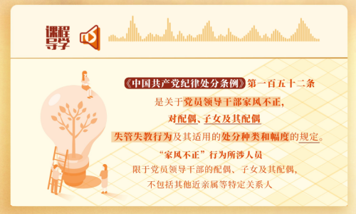《中国共产党纪律处分条例》第一百五十二条规定:“党员领导干部不重视家风建设,对配偶、子女及其配偶失管失教,造成不良影响或者严重后果的,给予警告或者严重警告处分;情节严重的,给予撤销党内职务处分。”