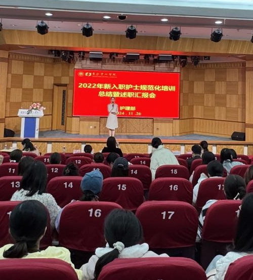 霜华渐浓,秋意深沉,奋楫笃行,且待芳华,为使新护士尽快适应新角色,迎接新工作,树立正确的职业价值观和职业使命感,根据国家卫健委《新入职护士规范化培训大纲》要求,立博体育 于2024年11月26日下午在健康管理中心一楼国际报告厅举办了2022年新入职护士规范化培训总结暨述职汇报会。护理部副主任董启玉、科护士长、护士长及新入职护士等130余人参加了此次会议,会议由神经内科陈乐担任主持。