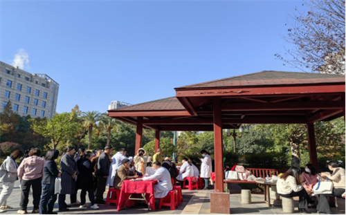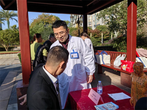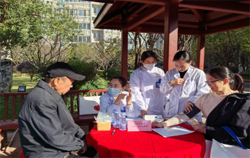 脊柱外科许宇霞主任医师、康复医学科邓福华副主任医师、全科医学科王莉副主任医师及周葵花主管护师等医疗、护理专家,为大家进行免费问诊、免费体格检查、免费测量血糖血压,医务人员耐心答疑解惑,根据具体情况提出科学、合理的健康指导,并一一送出健康礼包。