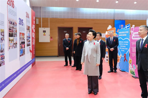 主题宣传活动前,彭丽媛等参观了“美好青春我做主”红丝带青春校园行十年历程展示,了解京津冀高校防艾宣传工作成效,同参加校园防艾宣传活动的大学生亲切交流,慰问医务人员、志愿者等,勉励大家继续携手努力,共同参与艾滋病防治工作,传递更多健康向上的防艾正能量,让艾滋病远离校园。
