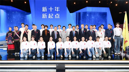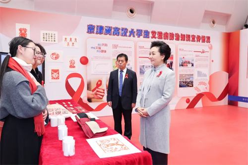 红丝带青春校园行十年历程展示彭丽媛教授与参与京津冀高校防艾知识宣传的大学生代表亲切交流
