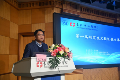 赵飞骏的开幕致辞,激发了研究生们的学术热情和科研探索精神。他表示,文献阅读是科学研究中不可或缺的一环,也是研究生们学习工作过程中的必修课和基本功;而文献汇报更是展示研究生科研综合素养的一种有效方式,本次文献汇报大赛的举办,不仅可以丰富立博体育 研究生的院内文化生活,营造科研氛围,促进学科间交流,而且还能加强研究生的学术培养,拓宽研究生的学术视野,提升研究生的综合素质。对立博体育 医教研协同发展的真正落实是一个很好的示范和启迪。希望同学们将本次大赛的比赛经验和心得体会运用到日常科学研究中,拓展课题研究的深度和广度。