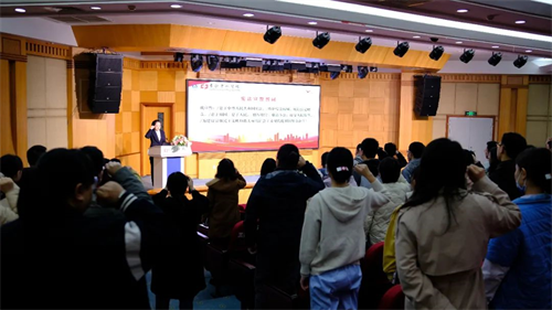 党委委员、副院长陈胜文发表了开幕致辞。她表示,宪法作为国家的根本大法,是治国安邦的总章程,集中体现了党和人民的意志。它不仅规定了国家的基本制度和基本任务,还确立了公民的基本权利和义务。多年来,宪法一直指导着医务人员依法行医,保障患者权益,维护医疗秩序。