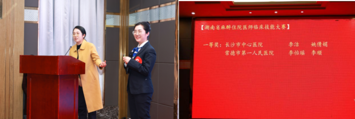 在病例汇报环节,李洁以精美的PPT制作、流畅的演讲汇报、精辟的病例总结,以及与带教老师姚倩娟的默契互动,赢得了评委的高度评价。她精炼地回答了点评专家的提问,最终在众多决赛选手中脱颖而出,荣获湖南省麻醉住院医师技能大赛一等奖。