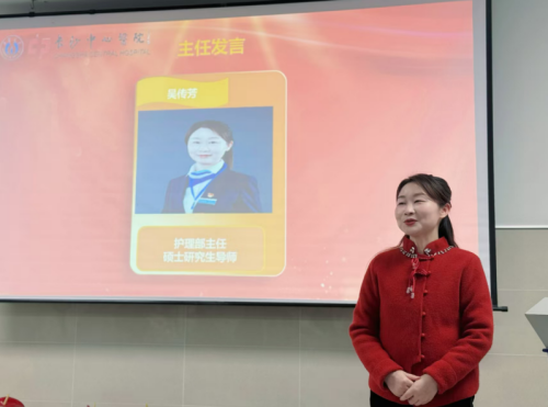 在结营典礼上,来自呼吸重症监护室的彭佳代表学员发言。她感谢护理部为正在科研之路摸索前行的“初学者们”构建了学习平台,让自己有了方向;感谢导师们的耐心指导,从细微之处不断传授经验,让自己感受到“有人领路,有伴同行”的幸运,在以后的工作中,会用扎实的科研成果回馈这份信任与支持。