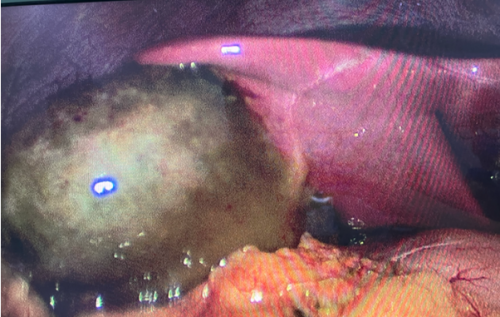 值班医生郭清平第一时间查看患者,了解患者病史,经过进行仔细评估和检查,考虑王晓小胆囊结石、胆囊炎、胆囊穿孔可能性大,建议立即进行手术。医务人员与家属充分沟通后,及时与手术室、麻醉室完善术前检查评估,为王晓小顺利实施急诊腹腔镜胆囊切除术。术中发现胆囊颈部有一约0.2cm结石嵌顿,胆囊内有结石数粒,胆囊已坏疽穿孔,形似“卤蛋”。