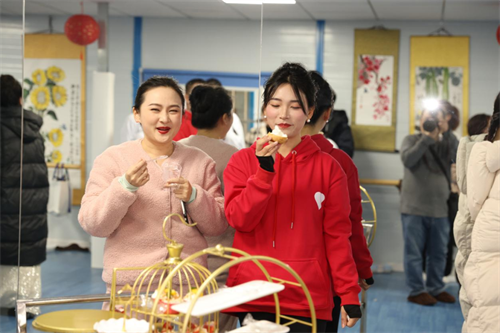 大家一边欣赏各个协会的精彩表演,一边在书画协会琳琅满目的画作展览中品尝美食协会自制的点心。