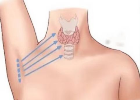 “现在技术真的越来越先进了,没想到手术切口能隐藏在腋窝自然褶皱中,脖子位置不留一点疤痕,感谢你们,兼顾了我的健康和美丽!”术后一周,杨晓到科室来复查,握着刘歆春主任的手激动地表示感谢。