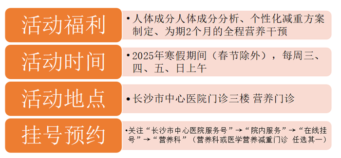 特别推出“寒假送福利!守护‘小胖墩’健康成长”主题公益活动。活动期间,除免挂号费外,孩子们将免费享受专业营养师提供的全程健康体重管理服务。