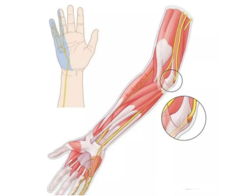 早期表现:小指及无名指内侧麻木、刺痛,夜间或屈肘时加重;