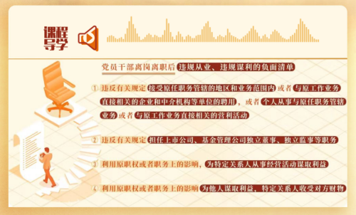 第一百零五条规定,党员干部离职或者退(离)休后违反有关规定接受原任职务管辖的地区和业务范围内或者与原工作业务直接相关的企业和中介机构等单位的聘用,或者个人从事与原任职务管辖业务或者与原工作业务直接相关的营利活动的,给予相应处分;党员领导干部离职或者退(离)休后违反有关规定担任上市公司、基金管理公司独立董事、独立监事等职务的,给予相应处分。