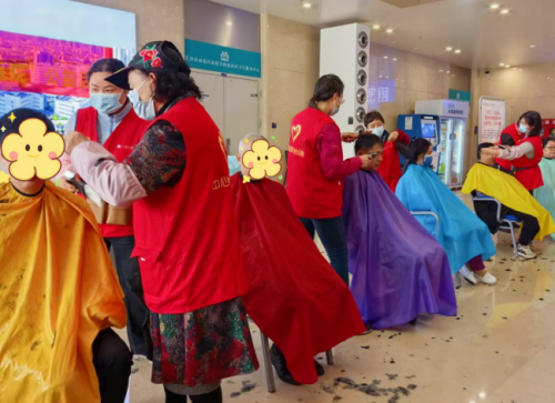 在病房,彭建武、王小玲、全玉花等志愿者组成的流动义剪队穿梭于各病区之间,主动“上门服务”为市民提供服务。在儿科病房,十余位正在输液的孩子参与理发,对爱心义剪队伍竖大拇指点赞。