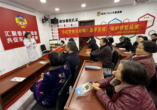 肾病、风湿免疫科义诊团,在科主任、主任医师文锐的带领下来到雨花区东山街道黎郡社区康景园,为社区居民举办“预防慢性肾脏病”科普讲座及爱心义诊活动。