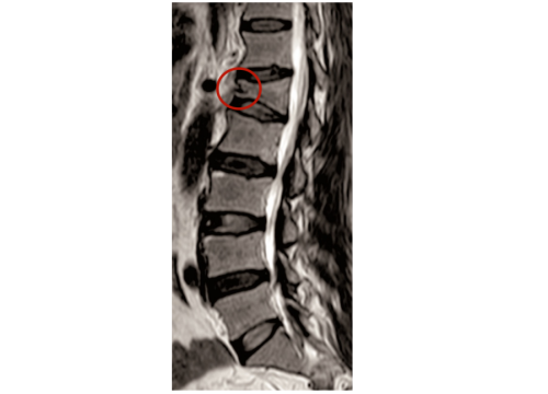核磁共振图像显示腰骶椎三角形态的“裂隙”,正是“虫蚀样骨质破坏”