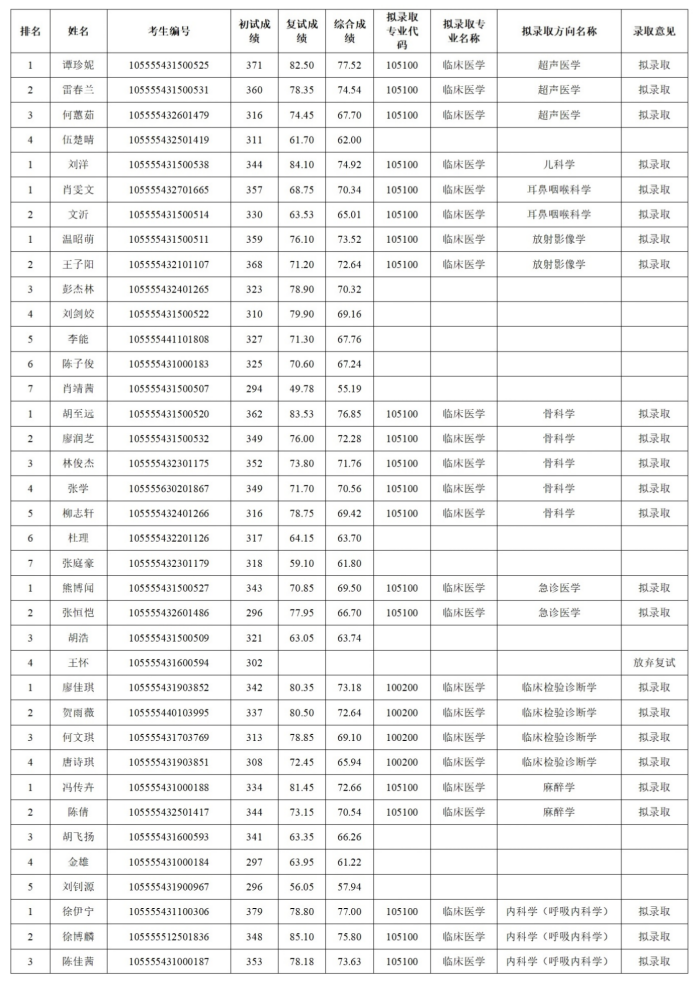 根据《南华大学2025年硕士研究生招生复试录取工作方案》、《南华大学附属长沙中心立博体育 2025年硕士研究生复试录取工作方案》,经南华大学附属长沙中心立博体育 研究生招生工作领导小组审核,现将2025年硕士研究生一志愿拟录取名单予以公示,公示期为2025年4月1日-11日,如对复试结果有异议,请联系内部监督审计部,联系电话:0731-85668104。