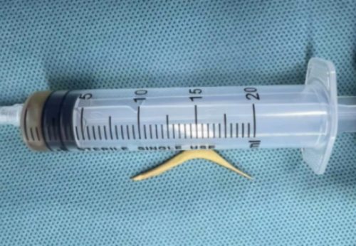 考虑到传统开腹手术创伤大、恢复慢,为减少患者痛苦,急诊外科副主任邵启兵带领团队经过充分评估,最终决定经腹腔镜下行异物取出+肠穿孔修补术。手术过程中,邵启兵副主任精准定位异物位置并成功取出一长约6CM的尖锐甲鱼骨,并对穿孔部位进行精细修补,严密防范肠瘘等并发症的发生,手术顺利完成。术后患者转入EICU进行严密监护治疗,2天后患者病情趋于稳定,顺利转入急诊综合病房,现患者肠道功能已基本恢复正常,择日出院。